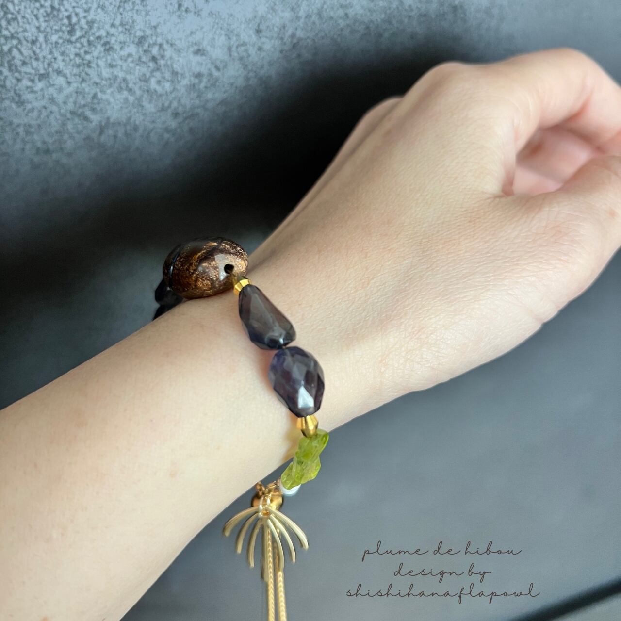 African symphony ボルタオパール/アイオライト/ペリドット/ハウライトブレスレット