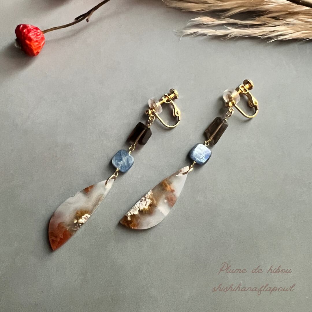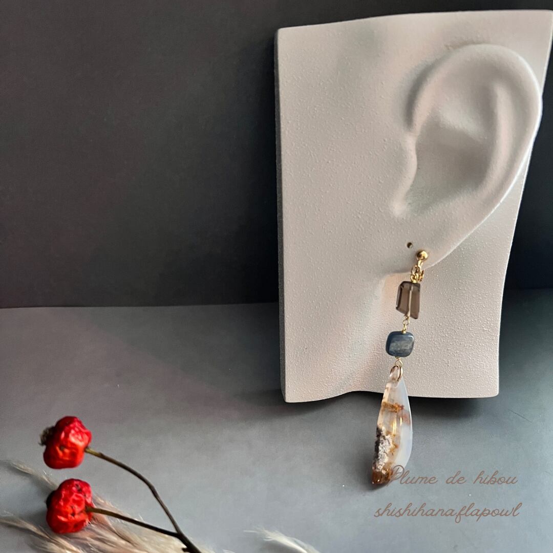 地球の造形美 モスアゲード,スモーキークオーツ、カイヤナイトイヤリングの魅力