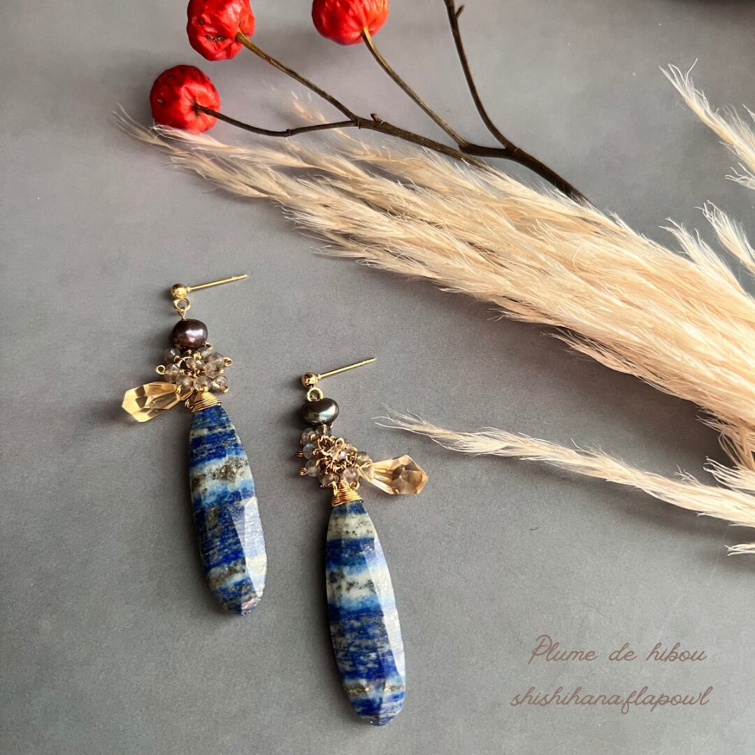 (ラピスラズリ、ラブラドライト、シトリン、淡水パール)